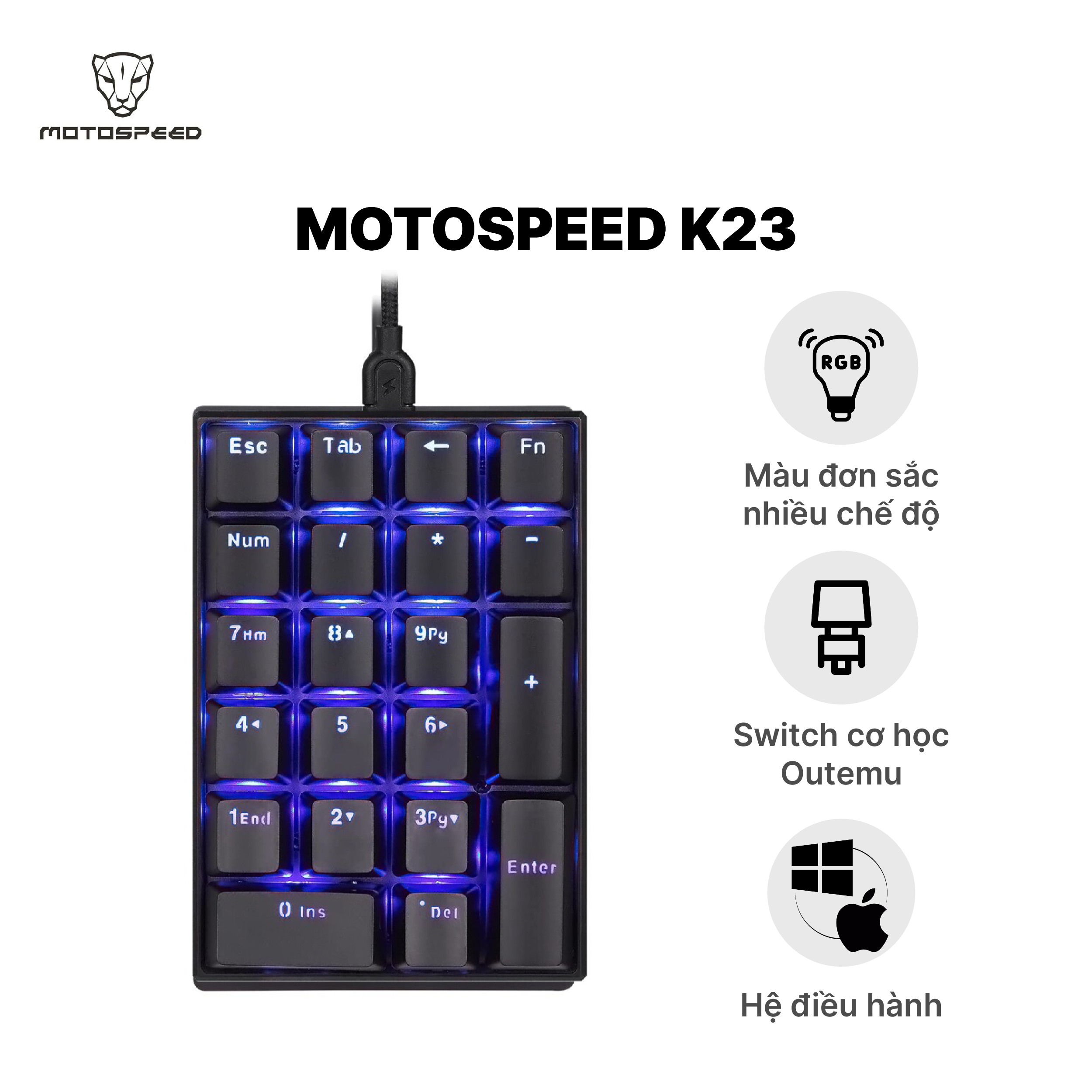 Motospeed K23 không đơn thuần là một bàn phím số phụ, mà là “vũ khí nhập liệu” dành cho người yêu sự chính xác, tốc độ và trải nghiệm gõ chuyên nghiệp.
